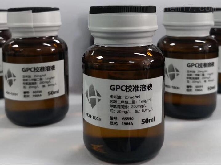 凝胶 渗透色谱校准溶液:含有玉米油(25mg/ml)、邻苯二甲酸二(2_二乙基己基)酯(1mg/ml)、甲氧滴滴涕(200mg/L)、芘(20mg/L)和硫(80mg/L)的混合溶液。
